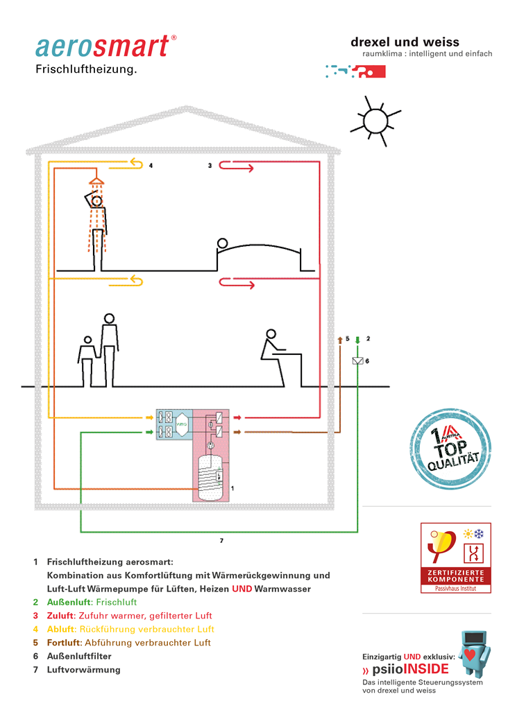 Az aerosmart az első PHI (Passivhause Institute) által tanúsított hővisszanyerős levegős kompaktgép világszerte. A masszív felépítés a piacon a legjobb akusztikai értékeket valósítja meg.