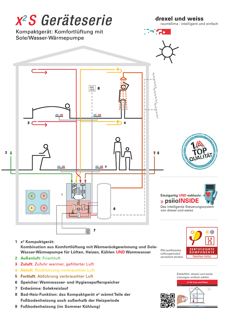 Az x²-sorozat kompakt készülékei friss levegőt, melegvizet, jóleső meleget szállítanak télen és kellemes hideget nyáron. A psiioSYSTEM (vezérlőegység) a belső komponensek mellett más rendszereket is szabályoz, mint például egy külső kiegészítő fűtést, vagy magát az árnyékolást is.